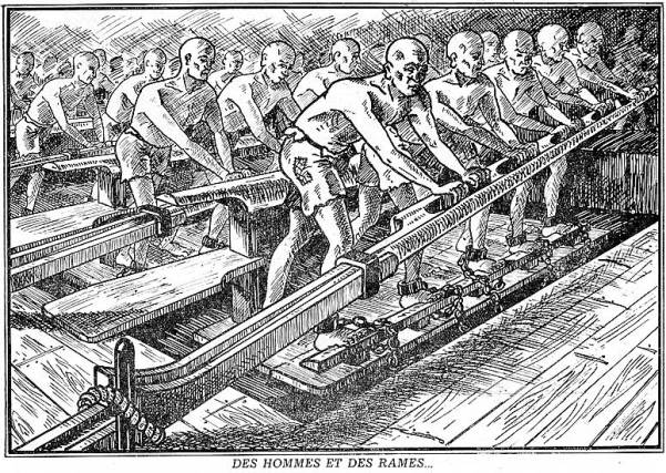 Каторгой изначально именовали судно с тройным рядом вёсел, появившееся в 7 веке в Венеции. Оттуда оно попало в другие страны Средиземноморья и Европы, а в России оказалось при Петре I и называлось также галерой. Гребцами на каторге были рабы либо преступники, поэтому слово распространилось на все виды наказаний, связанные с тяжёлой работой в ссылке.